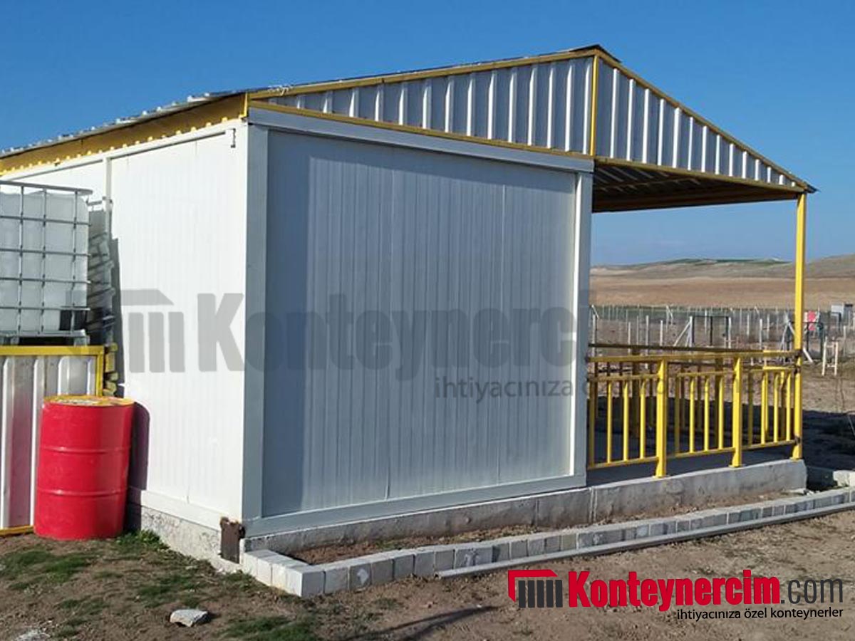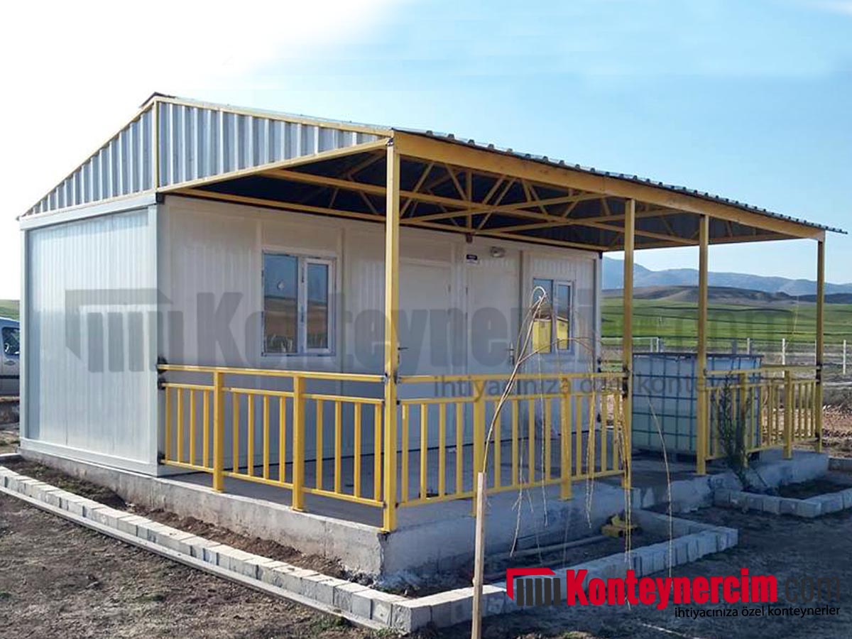 Bağ, bahçe, tarla gibi arsalar başta olmak üzere, yaylada, deniz kenarında, hemen hemen her yerde kullanabileceğiniz en ideal ölçü ve özelliklerde konteyner ev. En az 3 kişilik bir ailenin rahatlıkla yaşamasına imkan veren 2 odasından birini yatak odası olarak kullanabilir, diğerini de oturma odası olarak kullanabilirsiniz. Odalarda çekyat yada iki kişilik yatak rahatlıkla sığabilmektedir. Oda genişliklikleri 265×280 cm olmaktadır ve ortada WC, duş ve mutfak için 150×280’lik bir alan kalmaktadır. Üstündeki çatısı ile yazın aşırı sıcaklardan, kışında karlı ve şiddetli yağmurlu havalardan korunmaktasınız. Ayrıca konteyner evinizin önünde yer alan veranda bölümü ile bahar ve yaz aylarında sabahları mis gibi manzaraya karşı, temiz hava ile sabah kahvaltılarınızı, akşam yemeklerinizi keyifle yiyebilirsiniz, ferahça çaylarınızı içebilirsiniz. Öğlen sıcaklarında veranda altında şekerleme yapabilirsiniz.